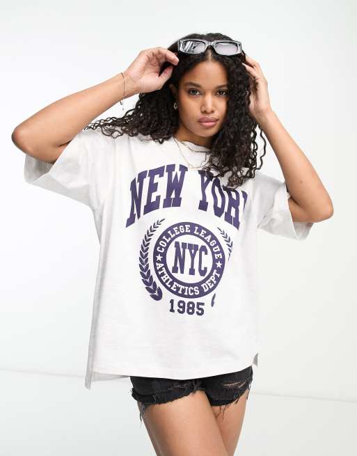 ASOS DESIGN - Kraftig oversized T-shirt med slidser i siderne og 'New York'-grafik i hvid
