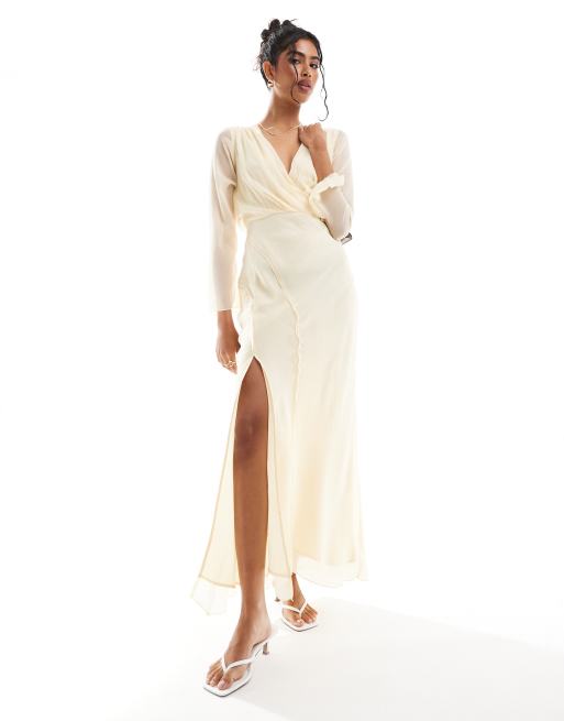 ASOS DESIGN - Kærnemælksgul midikjole med slå-om-snit foran og syningsdetaljer