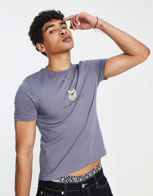 ASOS DESIGN - Krympet T-shirt med tegneserieprint på brystet i blå