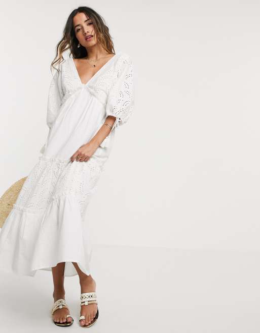 ASOS DESIGN - Lagdelt broderet maxikjole i cremefarve