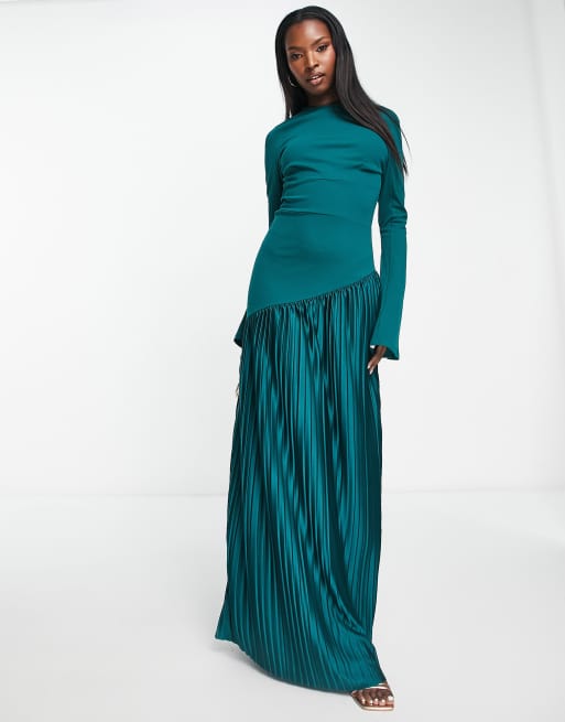 ASOS DESIGN - Lagdelt maxikjole med plisseringer og ærmer med svaj i mørkegrøn