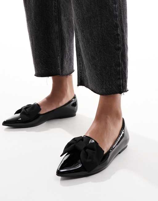 ASOS DESIGN - Lake - Sorte spidse ballerinasko med sløjfe