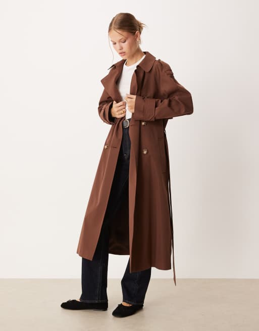 ASOS DESIGN - Lang chokoladebrun trenchcoat