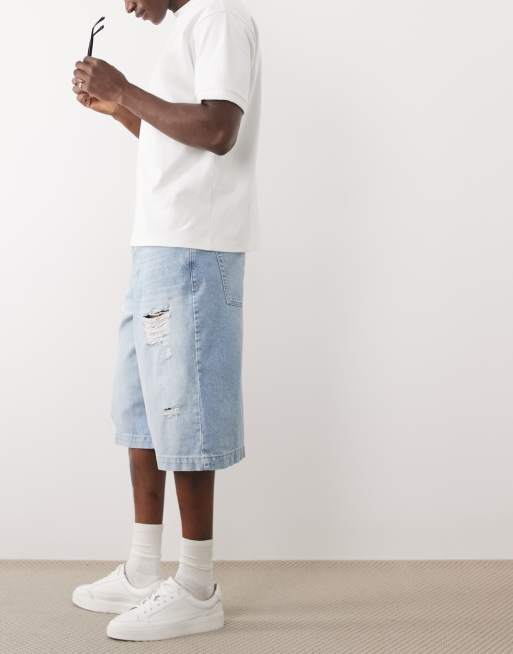 ASOS DESIGN - Lange lyseblå denimshorts med flænger