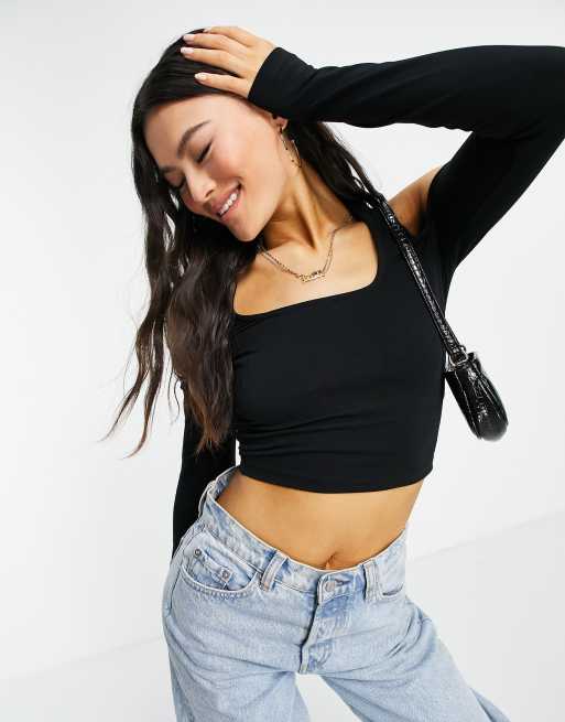 ASOS DESIGN - Langærmet croptop med halterneck i sort