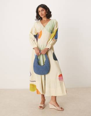 ASOS DESIGN - Langærmet maxikjole i poplin med print og v-hals