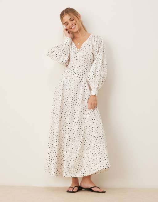 ASOS DESIGN - Langærmet maxikjole med V-hals og prikket print