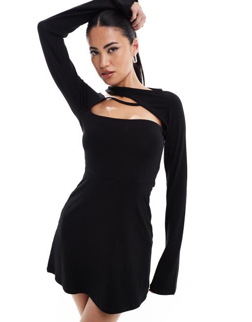 ASOS DESIGN - Langærmet minikjole med halsudskæring i sort