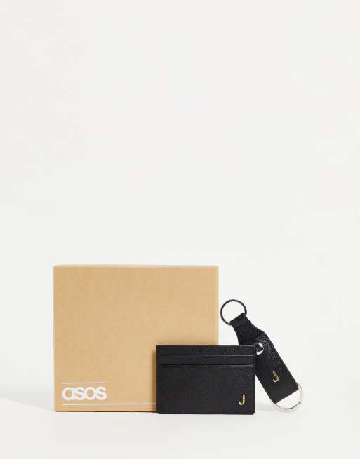 ASOS DESIGN - Lædersort med nøglering og kortholder med J-initial