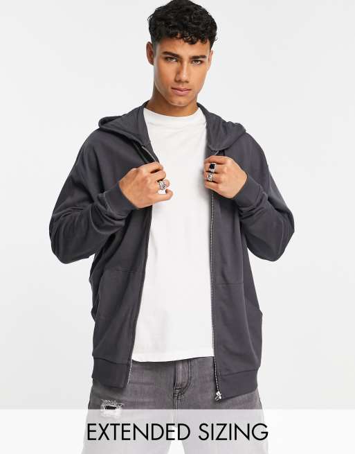 ASOS DESIGN - Let oversized hættetrøje med lynlås i vasket sort - BLACK