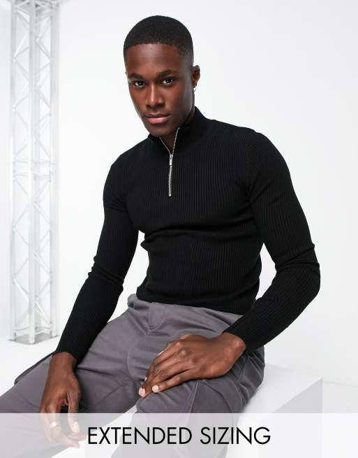 ASOS DESIGN - Let ribstrikket trøje med kort lynlås i sort