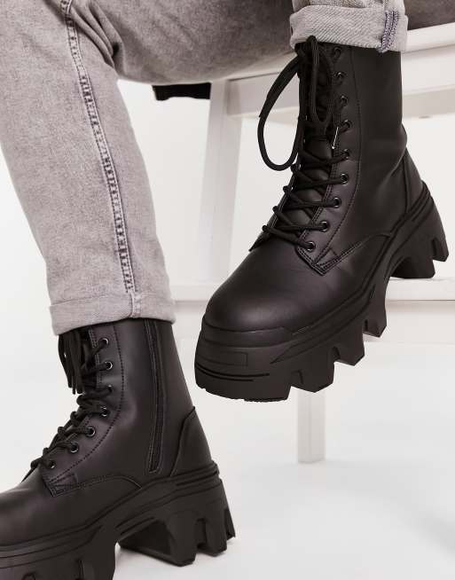 ASOS DESIGN - Læghøje sorte snørestøvler i imiteret læder med chunky sål