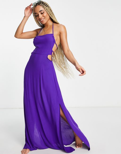 ASOS DESIGN - Lilla maxi-strandkjole med snører bagpå