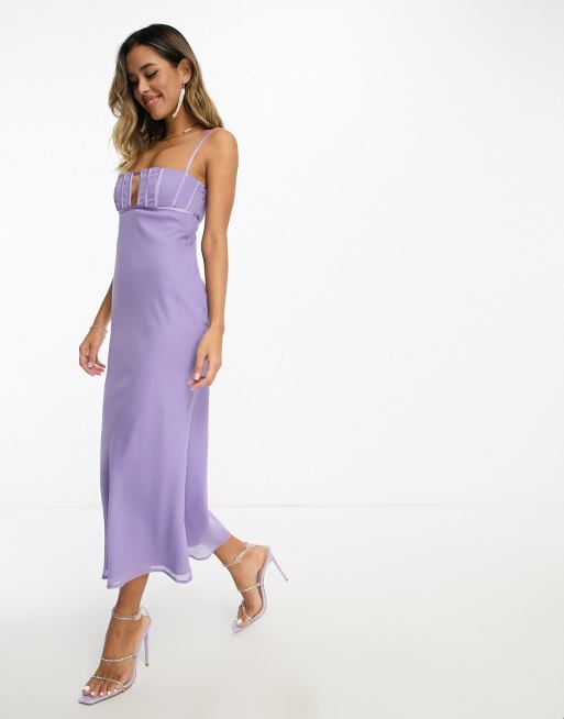 ASOS DESIGN - Lilla midikjole med korsetdetalje over brystet i skråtskåret stof