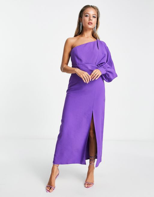 ASOS DESIGN - Lilla midikjole med oneshoulder-snit og bindebåndsdetalje