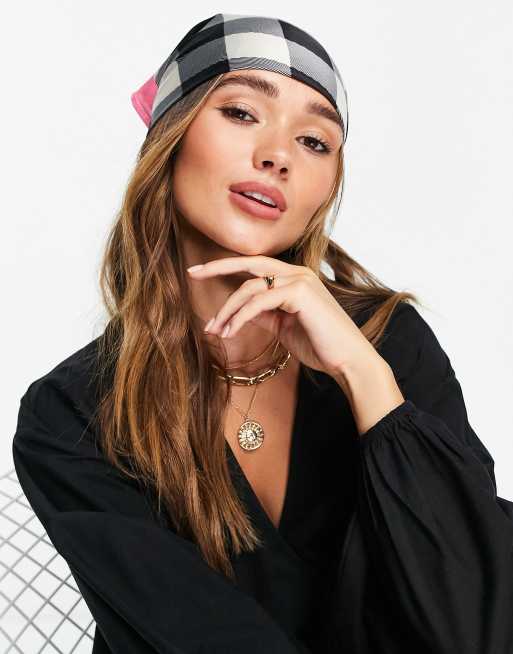 ASOS DESIGN - Lille hovedtørklæde med tern og pink kanter i polysatin