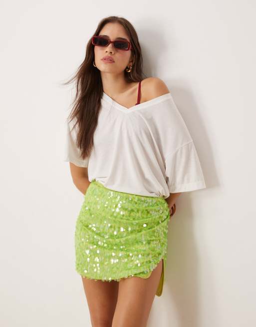 ASOS DESIGN - Limegrøn mininederdel med drapering og pailletter