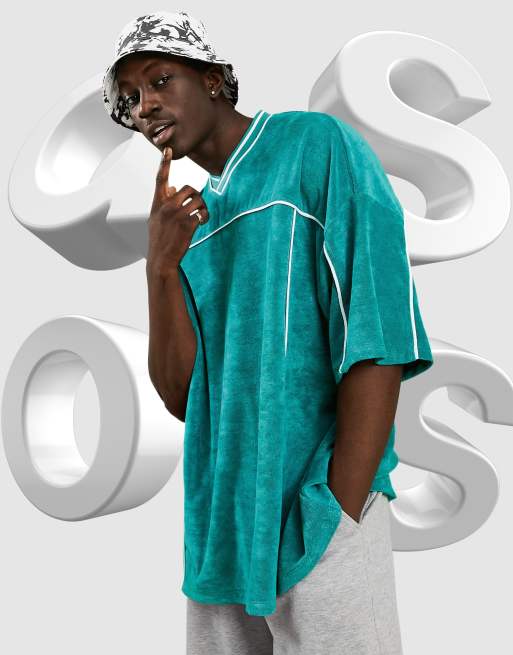 ASOS DESIGN - Longline T-shirt med V-hals i grøn frotté