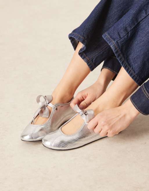 ASOS DESIGN - Loom - Sølvfarvede ballerinaer med bånddetaljer