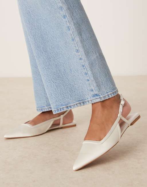 ASOS DESIGN - Lorraine - Hvide ballerinaer med hælrem i satin