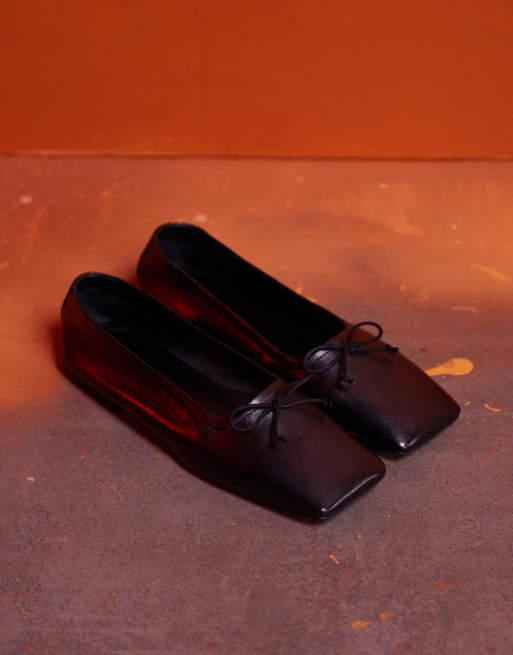 ASOS DESIGN - Lotus - Premium - Sort ballerinaer i læder