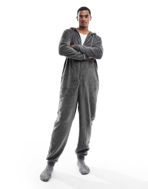 ASOS DESIGN - Lounge-onesie i grå fleece