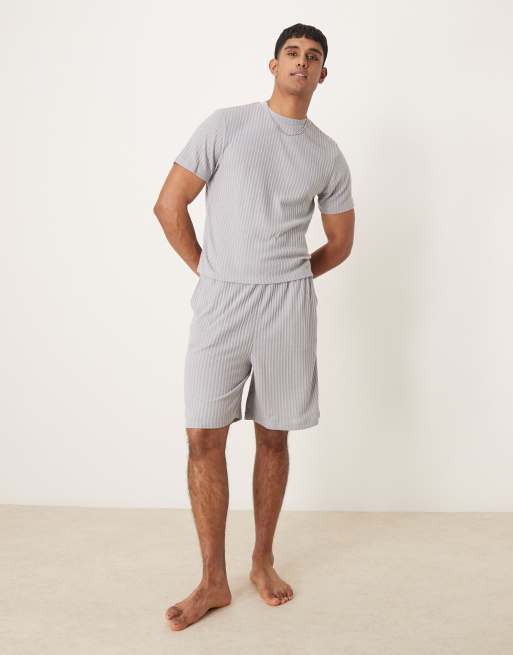 ASOS DESIGN - Loungewear - Gråt sæt med shorts og t-shirt med firkantet pasform i børstet ribstrik