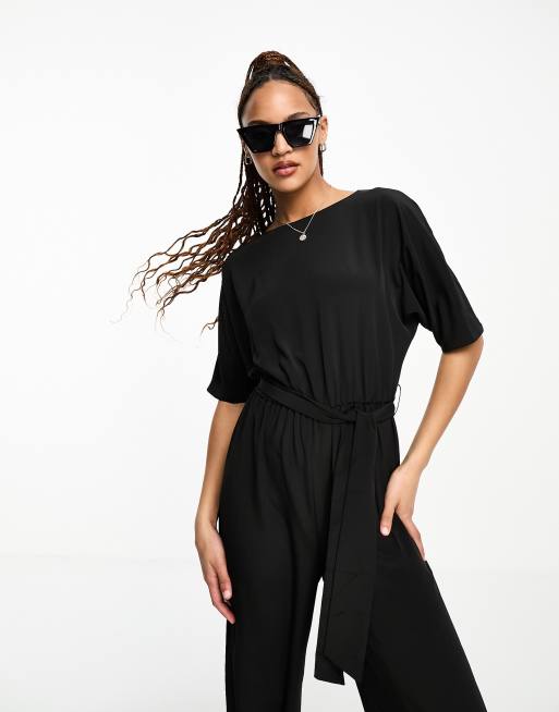 ASOS DESIGN - Løstsiddende jumpsuit med bindebånd i taljen i sort