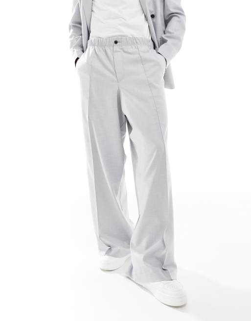 ASOS DESIGN - Løstsiddende pull on-habitbukser med crosshatch-mønster i lysegrå