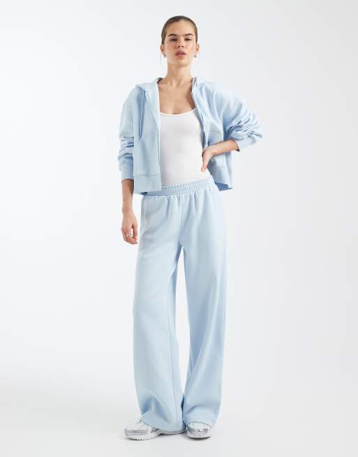 ASOS DESIGN - Lyseblå joggingbukser med vide ben og børstet tekstur indvendigt