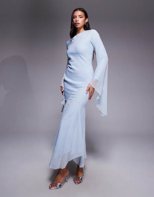 ASOS DESIGN - Lyseblå maxikjole med ekstreme flæseærmer og nederdel med kiler