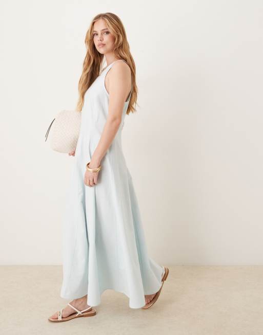 ASOS DESIGN - Lyseblå midikjole med sømdetaljer og bred halsudskæring