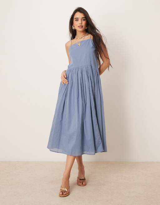 ASOS DESIGN - Lyseblå midikjole med sænket talje