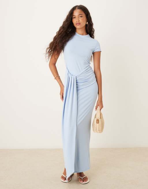 ASOS DESIGN - Lyseblå T-shirt-midikjole med knudedetalje ved taljen