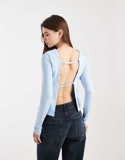 ASOS DESIGN - Lyseblå tætsiddende top med åben ryg og lange ærmer