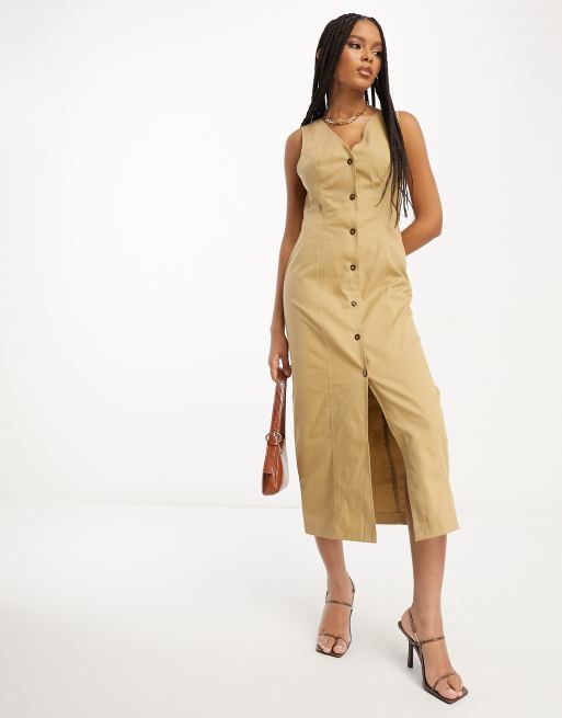 ASOS DESIGN - Lysebrun midikjole med knapper i twill