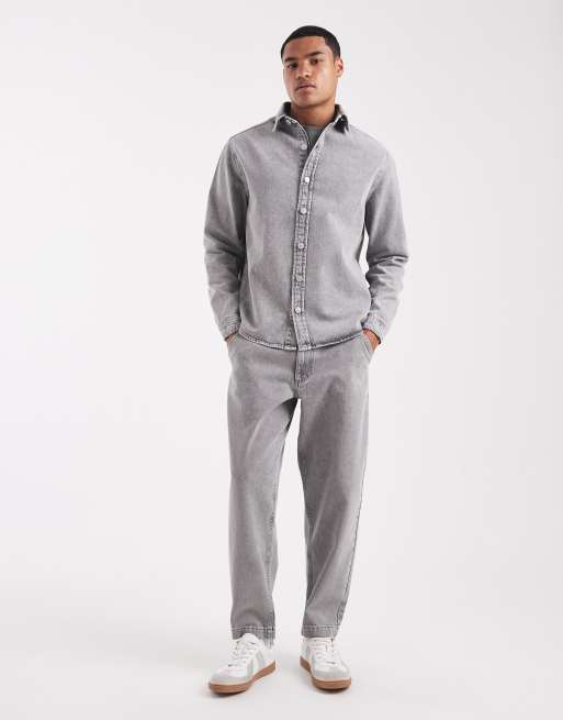 ASOS DESIGN - Lysegrå og forvaskede jeans med tapered og afslappet pasform - Del af sæt