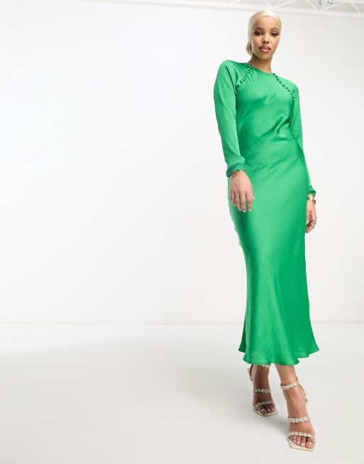 ASOS DESIGN - Lysegrøn maxikjole med skråsnit og knapper i satin