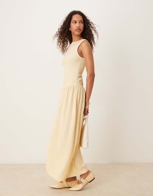 ASOS DESIGN - Lysegul maxikjole med tekstur og sænket talje