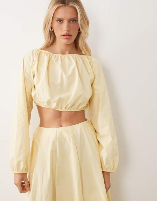 ASOS DESIGN - Lysegul tech-bluse med store ballonærmer - Del af sæt