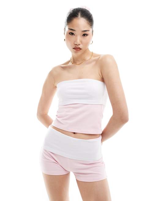 ASOS DESIGN - Lyserød bandeau-top med kontrastpanel - Del af sæt