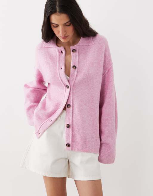 ASOS DESIGN - Lyserød cardigan med skjortedesign og krave samt syningsdetaljer