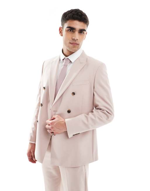 ASOS DESIGN - Lyserød dobbeltradet habitjakke i regular fit