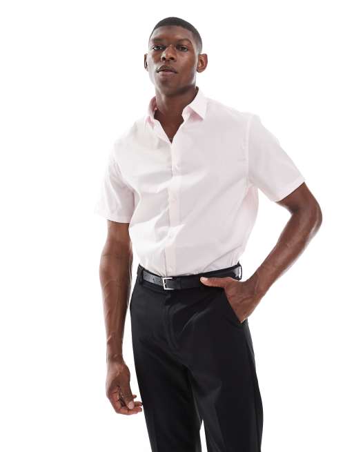 ASOS DESIGN - Lyserød formel skjorte i strygelet poplin i regular fit