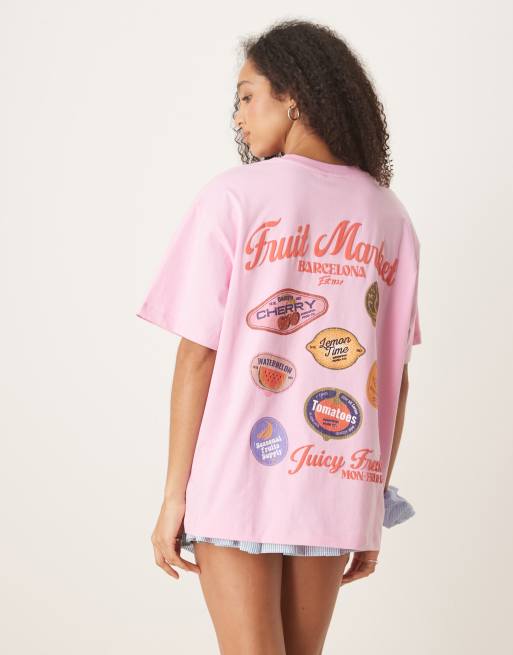 ASOS DESIGN - Lyserød oversized T-shirt med grafik med frugtmarked