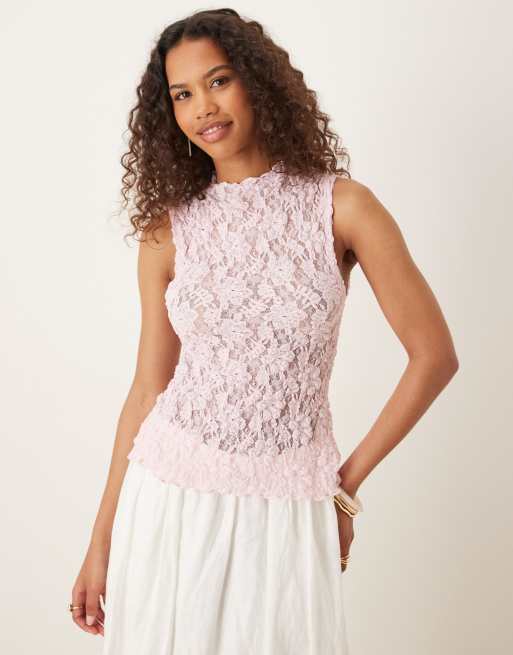 ASOS DESIGN - Lyserød tanktop med tekstur i blondestof