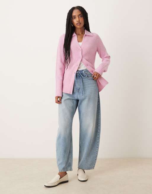 ASOS DESIGN - Lyserød tætsiddende longline-skjorte i strik
