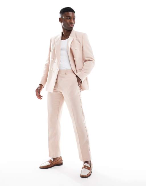 ASOS DESIGN - Lyserøde habitbukser med lige ben i uldblanding