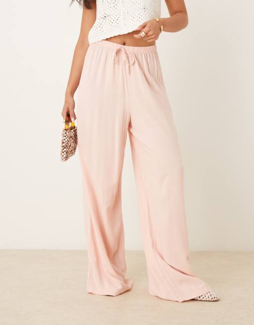 ASOS DESIGN - Lyserøde pull-on-bukser i hørblanding