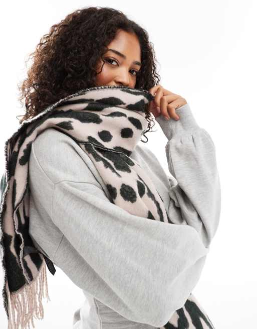 ASOS DESIGN - Lyserødt halstørklæde med koksgråt leopardprint i jacquard